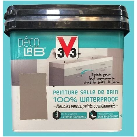 La gamme Déco LAB Peinture Salle de bain 100% Waterproof de la marque V33 est une peinture d’aspect satin idéale pour décorer vos meubles de salles de bain S’applique sur bois vernis ou peints, mélaminés, bois bruts ou bois exotiques. Ne s’applique pas sur les surfaces horizontales, ni sur les crédences murales.