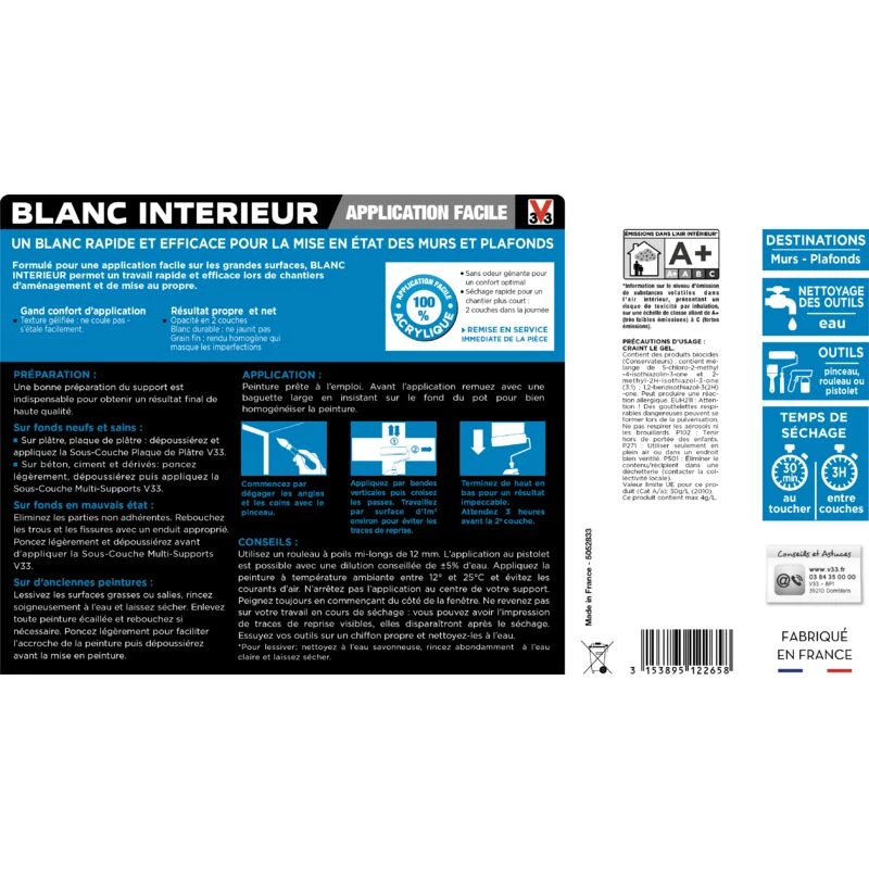 Peinture Intérieure Murs & Plafonds Blanc Mat 12 L V33