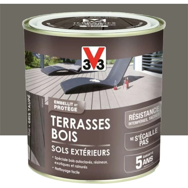 Peinture Sol V33 Terrasses Bois Sols Extérieurs Gris Taupé 0,5 L