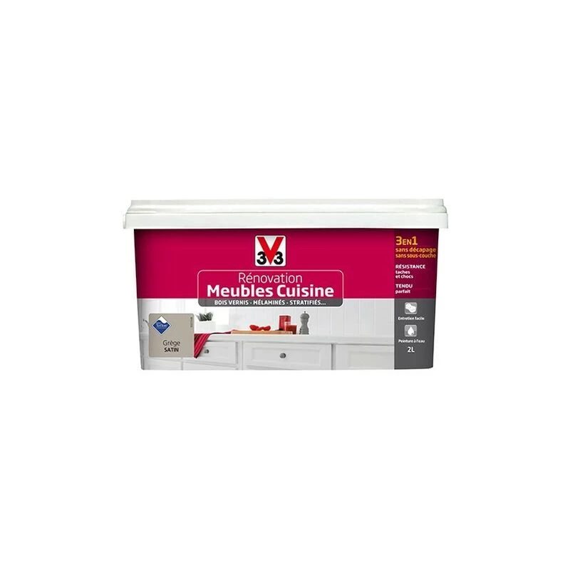 V33 Rénovation Meubles Cuisine (Bois Vernis-Mélaminés-Stratifiés) Satin Grège 2 L – Grège